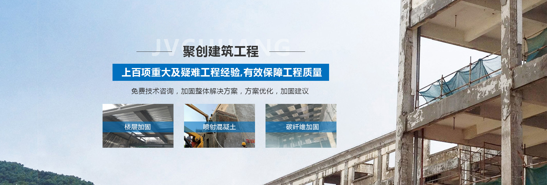 山西聚創(chuàng)建筑工程技術(shù)有限公司是一家涉足建筑工程改造加固、基礎(chǔ)加固、樓房糾偏、橋梁結(jié)構(gòu)加固補強、鋼結(jié)構(gòu)加固與安裝、靜力切割拆除、樓房增層、抗震加固、裝飾工程、工程檢測、設(shè)計、加固材料產(chǎn)品研發(fā)和新技術(shù)推廣或技術(shù)咨詢服務(wù)型加固企業(yè)等諸多領(lǐng)域。